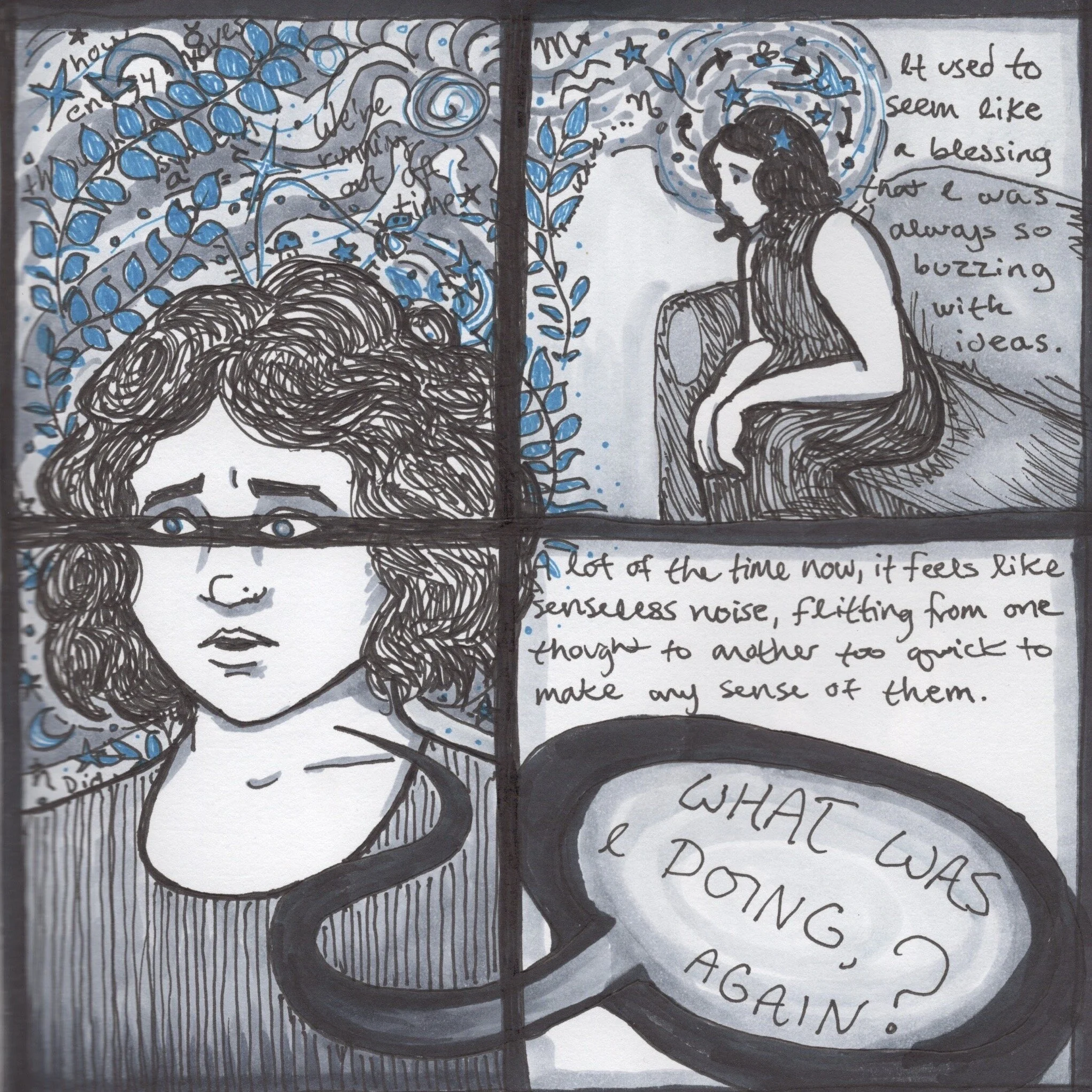 This chapter is finished. “Chapter 0” is a series of roughly sketched, autobiographical comics which I made during 2019-2020. It is essentially the prologue to my “Waking Dreams” comics.